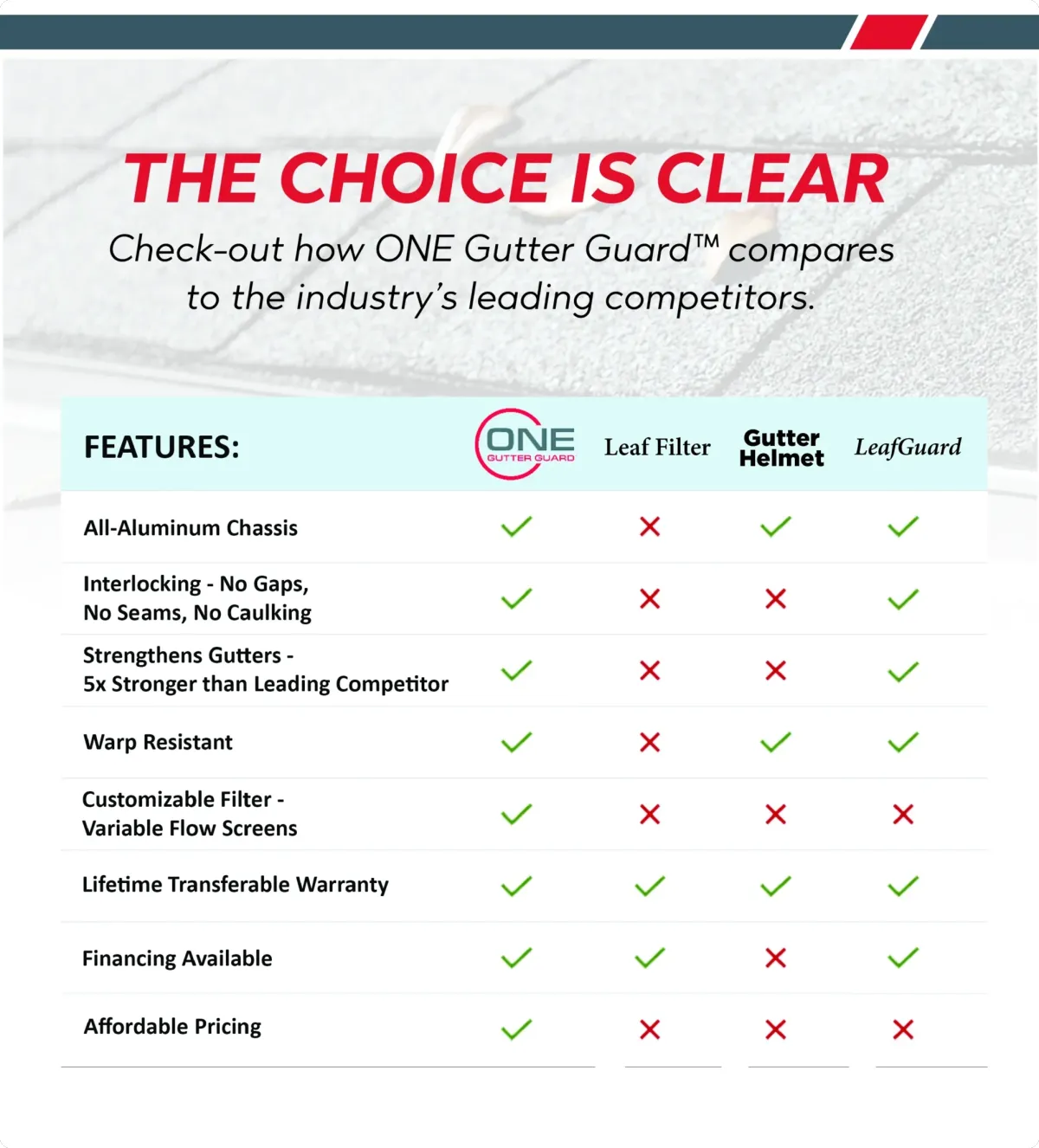 Say goodbye to gutter cleaning, ONE Gutter Guard™ keeps leaves, debris, and pests out while letting water flow freely. Engineered for durability, built for all seasons.
